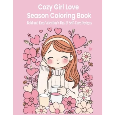 Cozy Girl Love Season Coloring Book: Bold and Easy Valentine’s Day & Self Care Designs for Adults Teens
