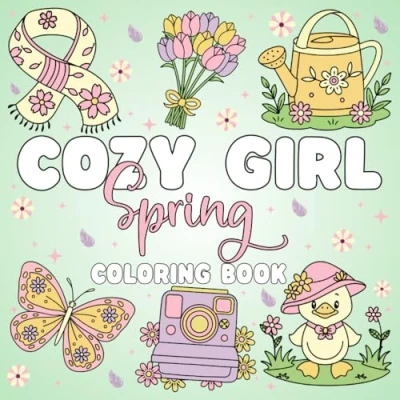 Cozy Girl Spring Coloring Book: Bold and Easy for Adults Teens Featuring Scenes, Cute Flowers, Aesthetic Designs Relaxation