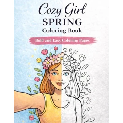 Cozy Girl Spring Coloring Book: Bold & Easy Relaxing Pages For Teens and Adults Cute Flowers, Vibes, Stress Relief