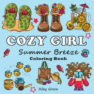 Cozy Girl Summer Breeze Coloring Book: Bold and Easy Designs for Teens Adults, Cute Simple Illustrations relaxation, Fun Stress Relief