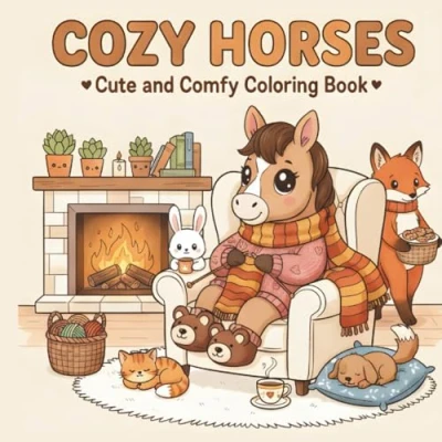 Cozy Horses: Cute and Comfy Coloring Book for Adults & Teens Featuring Adorable Horses in Scenes Stress Relief (Hygge Spaces Relaxation)