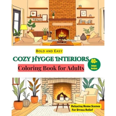 Cozy Hygge Interiors: Bold and Easy Stress Relief Coloring Book: Relaxing Home Scenes for Adults