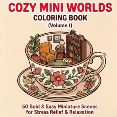 Cozy Mini Worlds: Volume 1: A Bold and Easy Coloring Book Featuring 50 Miniature Scenes for Stress Relief Relaxation (Perfect Adults Teens) (Cozy Worlds Series)