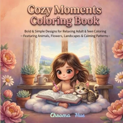 Cozy Moments Coloring Book: Bold & Simple Designs for Adults Teens' Relaxation and Stress Relief Featuring Animals, Flowers, Peaceful Landscapes Calming Patterns