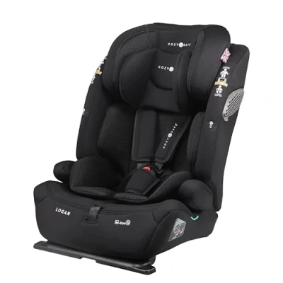 Cozy N Safe Logan i Size Car Seat High Backed Booster (15m 12yrs), Side Impact Protection, 5 Point Harness (up to 105cm), Angle Adjusting Wedge, Adjustable Headrest, Washable Covers (Onyx)