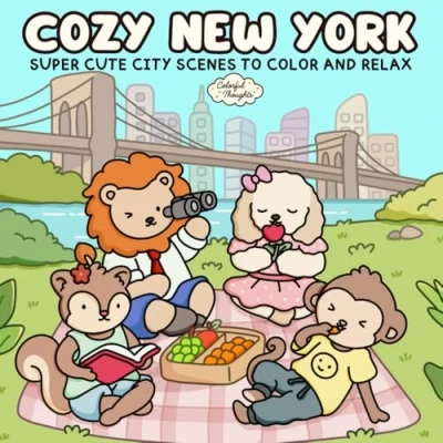 Cozy New York: Super Cute Coloring Book Featuring Whimsical City Scenes for Adults & Teens