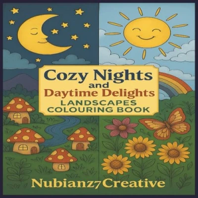Cozy Nights & Daytime Delights: Landscapes Colouring Book All Ages Cute and bold fun