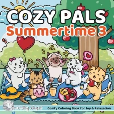 Cozy PALS SUMMERTIME 3: Comfy Coloring Book for Adults and Teens Featuring Cute Adorable Kittens in Hygge Moments Relaxation (Bold & Simple, Easy) (COZY Series)