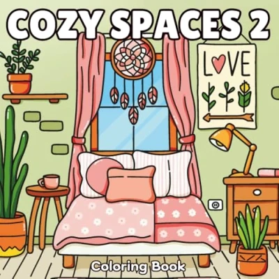 Cozy Spaces 2: Comfy Hygge Rooms Coloring Book For Adults and Teens, Featuring Cute Fuzzy Animals, Relaxation (Cozy Books)