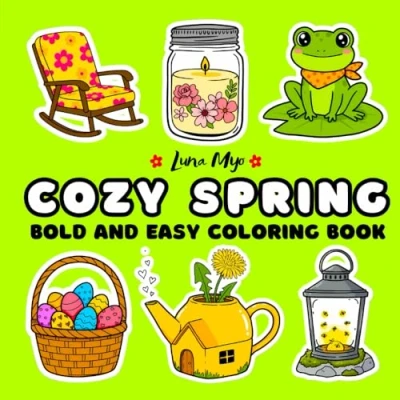 Cozy Spring Coloring Book: 50 Cute & Relaxing Designs with Bold and Easy Springtime Scenes for Adults Teens Flowers, Animals, Gardens Stress Relief (Bold Book)