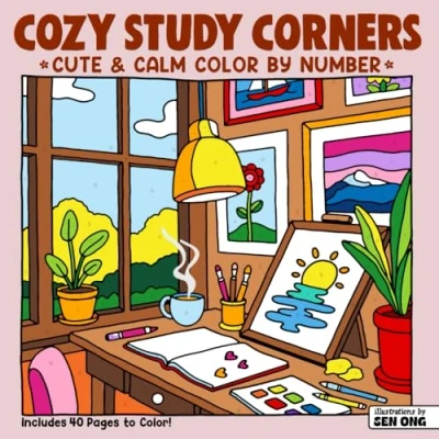 Cozy Study Corners Cute & Calm Color By Number: Whimsical Workspaces for Relaxing Fun