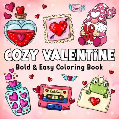 Cozy Valentine: Cute and Simple Coloring Book for Adults & Teens with Easy Bold Designs to Relax, Unwind, Celebrate Love This Valentine’s Day