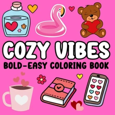 Cozy Vibes Bold and Easy Coloring Book: Stress Relief & Relaxation for Teens Adults 50 Fun Simple Designs Mindfulness Creativity 8.5 x