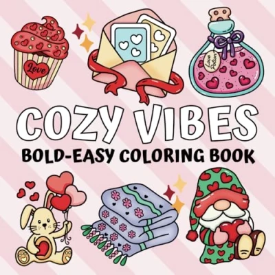 Cozy Vibes Bold & Easy Coloring Book: for Adults and Teens Featuring Items in Cute Groovy Designs, Simple Big Drawings Stress Relief Relaxation.
