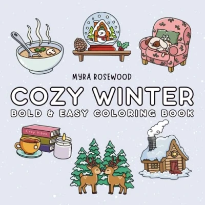 Cozy Winter: Bold And Easy Coloring Book For Adults Kids Featuring Cute Simple Hygge Designs
