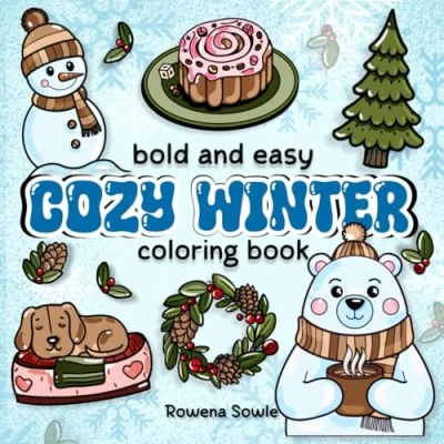 Cozy Winter Coloring Book: 50+ Bold and Easy Designs for All Ages with Gingerbread Houses, Toys, Cookies, more from the Season