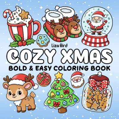 Cozy Xmas: Coloring Book for Adults and Kids With Adorable Christmas Objects, Bold Easy Designs Stress Relief
