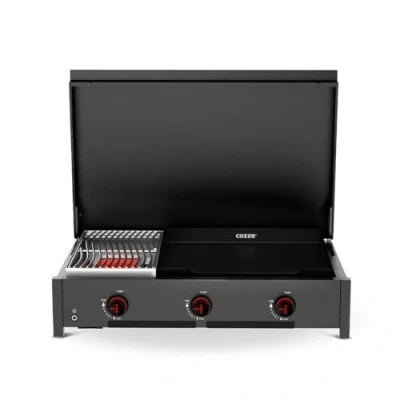 A large cooking surface with cozze Elements griddle The Combo 900 is characterised by its generous 53 cm enamelled cast iron griddle. Ideal for vegetables, seafood or eggs, it offers total versatility. This stylish design allows you to skip and cook delicate foods to perfection for all your outdoor meals. Requires one battery (not included) The responsiveness of a real gas griddle Enjoy the precision of a modern gas griddle. The M-shaped burner ensures even heat distribution throughout the plate. It is the ideal solution for healthy and fast cooking, allowing you to manage multiple cooking simultaneously without loss of temperature Intensive grilling for meat Become an expert in meat grill thanks to the dedicated infrared burner. It generates intense heat to grab steaks instantly, trapping juices inside. Get restaurant quality with tender and perfectly marked meat, impossible to reproduce on a standard grill The flexibility of the combined grill mode This model is not limited, it is also a high-performance grill made of stainless steel. The 26cm grid area is perfect for sausages or chicken. With a total output of 7.5 kW, you have the flexibility to vary textures and flavors when barbecuing The ultimate gas barbecue with griddle and grill Opt for the ultimate gas barbecue with griddle and grill combined. Made of powder-coated galvanised steel with LED buttons, it is sturdy. It's the sustainable and compact investment for those who want to cook everything from breakfast to dinner, on a single unit, Manufacturer: Millarco International A/S