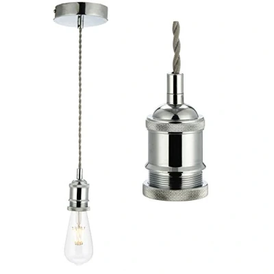 COZZY Vintage Ceiling Pendant Light Fitting, Grey Twisted Braided Flex,E27 Lamp Holder Suspended Fitting Kit Chrome