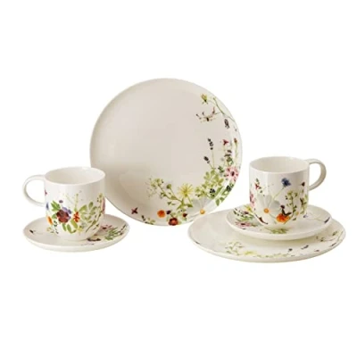 The new floral decor Grand Air by Swiss textile designer Regula Stüdli is as light and fresh as a nature experience in fresh mountain air. As blown by the wind and combined by nature into a multi-coloured flower ensemble, spicy herbs and edible flowers float freely over the form Brillance and merge with it into a sensual unit. 10530-405109-28598 Rosenthal