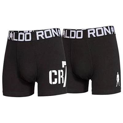 CR7 2 Pack Boy's Cotton Trunk, Black, 10/12y