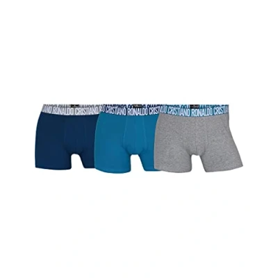 Cr7 Cristiano Ronaldo Men's Cotton Fashion Three Pack Trunks, Blue/Green/Grey, XL UK