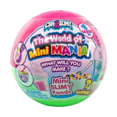 CREATE MINI SLIMY FOODS Create your very own mini slimy foods with the Cra Z Slimy world of Mini Mania Surprise Ball Collectables! SO MANY SLIMYS TO DISCOVER What will you make? Discover and make mini slimy Slushies, Smoothies, Acai bowls, Cereals, Boba tea and Milkshakes. AWESOME ADD INS Mix the slime with the super cool add ins then fill the miniature containers to make your creations! Then finish off with more toppings! Will it be sprinkles for your cupcakes, fruit for your acai bowl or ice cubes for your slushy drinks! CUTE PACKAGING Each surrpise ball also comes with miniature packaging to complete your slimy food creations! COLLECT THEM ALL Collect and build your world of mini mania! You will have so much fun unboxing your surprise ball and then mixing and making the mini slimy food creations hidden inside!, Manufacturer: Larose Industries