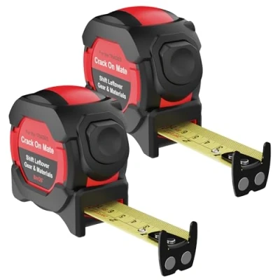 TWO TAPES BUILT FOR SITE WORK: 2 pack of 8m / 26ft tape measures built for daily construction use. Rubber armoured bodies handle drops, dust and hard graft on busy sites without failing. AUTO LOCK ONE HAND CONTROL: Auto-lock blades hold solid for fast one-hand measuring. No snap-back, no fighting the blade. Ideal when marking, setting out or working at pace on site. STRONG MAGNETIC HOOK HOLD: Heavy duty magnetic hooks grip steel, fixings and framing securely. Stay put while you mark up or cut. Perfect for steelwork, stud walls and solo measuring. 2M + STANDOUT WIDE BLADE: 25mm wide double sided blades deliver over 2 metres of standout. Stay rigid across longer spans without collapsing mid pull. Built for working alone. BUILT BY AND FOR TRADES: Crack On Mate is built by trades for trades. Tools made for builders, carpenters, sparkies and roofers who expect kit to work as hard as they do.