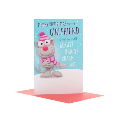 Crackers To My Girlfriend Funny Cute Cat Christmas Greeting Card
