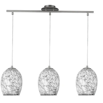 The Crackle 3 Light Ceiling Pendant Bar accommodates three E27 lamps, offering versatility in terms of lighting intensity and style. Each lamp can be dimmed to create the desired level of illumination, making this lighting fixture suitable for both bright and ambient lighting needs. The maximum wattage of 60W per lamp ensures that this pendant provides sufficient light to illuminate larger spaces effectively.