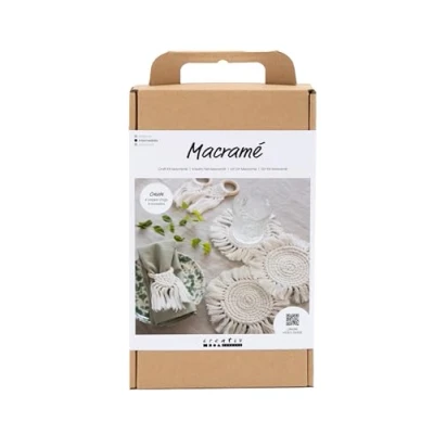 Creativ Craft Kit – Off White Macramé Table Decorations Set. Add a handcrafted touch to your dining experience with the Creativ Craft Kit Macramé Table Decorations Set in off white. This complete kit includes everything you need to make beautiful napkin rings and beverage coasters for a stylish, personalised table setting.. Complete Kit: Includes all materials and clear instructions to help you start crafting immediately.. Create Elegant Table Accessories: Make four custom napkin rings and four matching beverage coasters using classic macramé techniques.. Easy-to-Learn Knots: Features three simple yet beautiful macramé knots, perfect for beginners and experienced crafters alike.. Stylish Off White Colour: Complements any table décor, adding a natural, boho-inspired finish to your setting.. Perfect for Personalised Décor: Ideal for special occasions, dinner parties, or as thoughtful handmade gifts.. Elevate your table setting with the Creativ Craft Kit Macramé Table Decorations Set—your complete solution for creating unique, elegant, and personalised dining accessories at home.