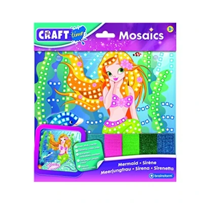 Make sparkly pictures with this beautiful Mermaid mosaic kit. Children will love to spend time on these easy yet absorbing projects. Peel, stick, create. Each kit includes 400+ sparkly self-adhesive foam tiles of different colours and a 25cm x 25cm picture to decorate. As children decorate they will build fine motor skills and hand-eye coordination. Packaging and instructions are multi-lingual including English, French, German, Spanish and Italian., Manufacturer: Craft Time