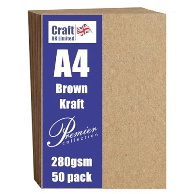 Go CraftA4 Brown Kraft Card - Pack of 50 A pack of 50 A4 sheets of smooth 225 gsm double sided card Perfect for handmade greetings cards, childrens crafting, die cutting, punching, displays, and other creative paper crafts CUK2042 MPN 2042