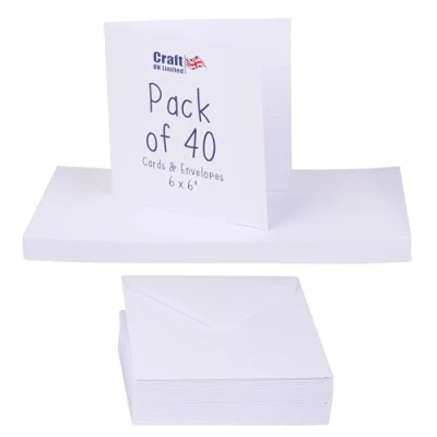 Craft UK 2043 Premium 40, 300 GSM 6x6 Card & Envelopes, White