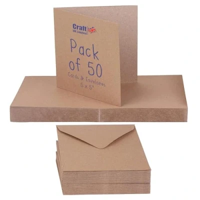 Craft UK 2050 5 x inch Kraft Card and Envelope pack of 50 Brown