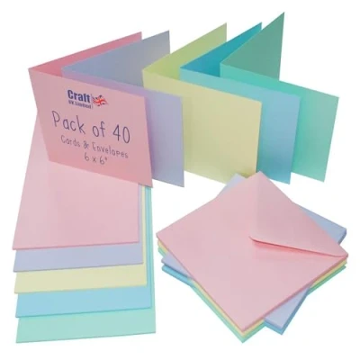 Craft UK 2308 6x6" Assorted Pastel Cards & Envelopes Pack of 40