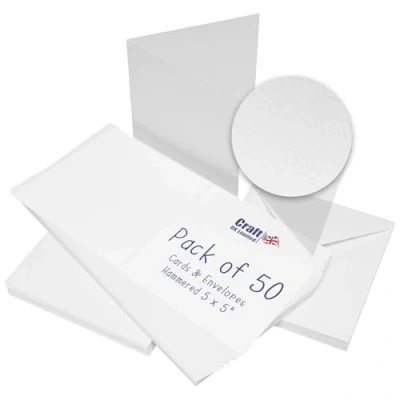 Craft UK 2382 5 x inch White Hammered Card and Envelope Pack of 50, 300 GSM, 5X5