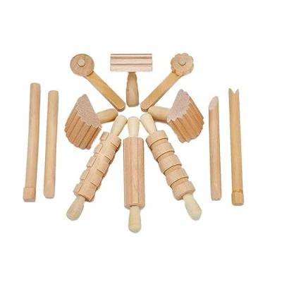Craftplay Modelling tools Wooden dough Pack of 12 for cutting, stamping & rolling