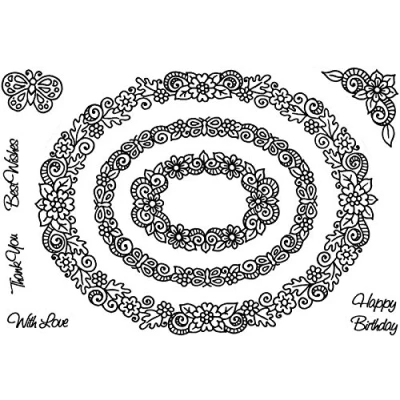 Crafty Impressions A6 Sue Dix Floral Oval Frames Stamp