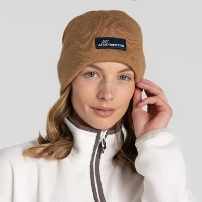Archive Craghoppers knitted beanie with turned-back band and branded badge to front. Made from part-recycled, acrylic yarn Our products use the latest technologies to ensure superior insulating properties for the wearer 50% Recycled Polyester, 50% Acrylic.