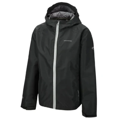 Lined Grown on hood with elastic at front and sides and a velcro adjuster at back 2 lower pockets with zip fastening Self fabric cuff adjusters and brushed chin guard Reflective prints