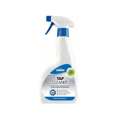 General description In the bathroom, achieving a sparkling clean finish is essential, but many common sanitary cleaners can damage taps and fittings. While these cleaners may leave taps thoroughly clean, they often risk harming gaskets and components such as valves and cartridges. To avoid these issues, we recommend the Cramer Tap Cleaner, which effectively cleans and cares for your fixtures without causing damage. It gently removes limescale and deposits while preserving the integrity of ceramic and enamel surfaces, ensuring the longevity of your sanitary objects. Technical specifications Volume: 500ml Features: Dirt-repellent through beading effect, antistatic effect Quality: TUV proofed Eco-friendly: Biodegradable Usage For optimal results, spray the cleaner onto the tap, allow it to work briefly, then rinse with warm water and rub dry. It is suitable for use on various surfaces including chrome, stainless steel, brass, gold, and both glossy and matte finishes.