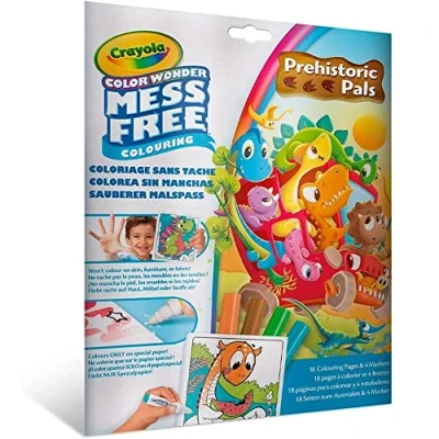 CRAYOLA Color Wonder Coloring Kit with 18 Pages and 4 Spotless Markers, Theme: Dinosaur Friends, Creative Activity for Children, Age 3, 5 Years, 75 7158