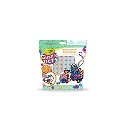 GLITTER ART Includes 42 Glitter Dots 3 Keychains & Lids 20 Beads 3 Clasps & String 1 Clay Tool and Instruction Sheet Squish to create DIY Keychains in this easy craft for kids DIY KEYCHAINS These keychains are cute as can be and kids will love customizing them with different colour Glitter Dots CLEANUP WITH DOTS Use Glitter Dots to pick up left behind pieces EASY CRAFT SUPPLIES Bring home a simple craft for kids and explore the many possibilities of glitter art with Glitter Dots GIFT FOR KIDS A great gift for girls and boys ages 5 & up!, Manufacturer: Crayola