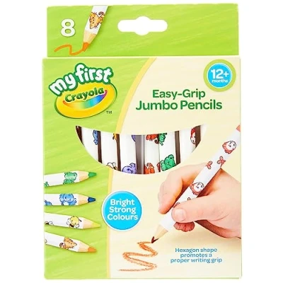 Specifically designed for toddlers and preschoolers, Crayola My First Jumbo Colouring Pencils feature a chunky, easy-to-grip barrel, perfect for small hands. These thick, sturdy pencils make drawing and coloring effortless for beginners. With 8 vibrant and assorted colours, these jumbo pencils encourage self-expression and help children learn color recognition. Ideal for inspiring creativity in young artists, these pencils make every art project come to life. Built to withstand rough handling, Crayola’s jumbo colouring pencils are designed to be strong and break-resistant, providing hours of coloring fun without constant sharpening. Perfect for early learners and active toddlers. Parents can feel confident knowing these My First Crayola Jumbo Colouring Pencils are non-toxic and safe for kids aged 12 months and up. Made to Crayola's high-quality standards, they’re an ideal choice for worry-free coloring. These jumbo colouring pencils are perfect for developing fine motor skills and hand-eye coordination in young children. Whether for home or classroom, they provide an engaging way to introduce early learning through color and creativity., Manufacturer: Crayola