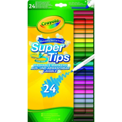 CRAYOLA SuperTips Washable Markers Assorted Colours (Pack of 24) Premium Felt Tip Pens That Can Easily Wash Off Skin & Clothing Ideal for Kids Aged 3+