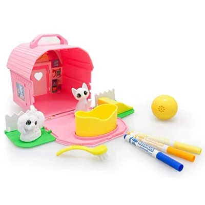 WASHIMALS PLAYGROUND: A fun portable case that opens to reveal a fantastic playground with two cute puppies to colour following the imagination COLOR: Have fun decorating these cute animals with scented markers and non-toxic and ultra-washable inks, easy to remove from hands and clothing LAVA AND RECOLOR: Bathe puppies with the tray and brush included in the set. The water washes away all the colour, leaving puppies ready for a new game Put to NANNA: At the end of the game, put your puppies to sleep inside the box in the shape of a house, which can be opened as a book and can be used as a practical storage box USEFUL INFORMATION: The playground set includes 2 puppies, 3 scented markers, 1 ball, 1 slide, 1 bathtub, 1 brush and 1 handy case. Recommended age: 36 months, Manufacturer: Crayola