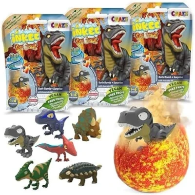 Craze INKEE Surprise Dino Pack of 3 Children's Bath Bombs with Dinosaur Figures, x Magic Raspberry Fragrance Toy
