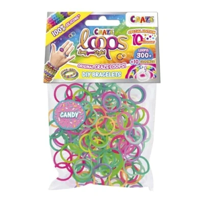 Loops bag 300 loom bands set: the Loops Bag Loom bands set contains 300 Craze Loops rubber bands in different colour combinations and 10 premium closures; each pack has simple and well-illustrated instructions on the back – The Loops are offered in a foil bag in 4 different colour mixes (pre-selection not possible: let yourself be surprised and ColleColleColleall all the Variantens) Make your own rubber bracelets: with Craze Loops there are no limits to creativity - create your own jewellery, create colourful friendship bracelets and wonderful loom bands - design and make your own bracelets individually - one, two, three - and off you go Stylish and comfortable: the bracelets are particularly comfortable to wear, skin-friendly, stretchy and do not become porous - so that the loom bands tied with a lot of love and dedication do not pull on the skin and the creative works of art are beautifully elastic, we have made our Craze Loops not from PVC, but from 100% silicone Even more accessories and sets to be creative: everyone can just be round and colourful - we at Craze thought this and have also created many great accessories and cool sets for our LOOPS rubber bracelets children, which include everything you need to get started right away We at Craze want to offer children fun and safe toys: the original Craze Loops is safe to use, without toxins or dangerous ingredients for children; visit our Amazon store and discover all our products, Manufacturer: CRAZE