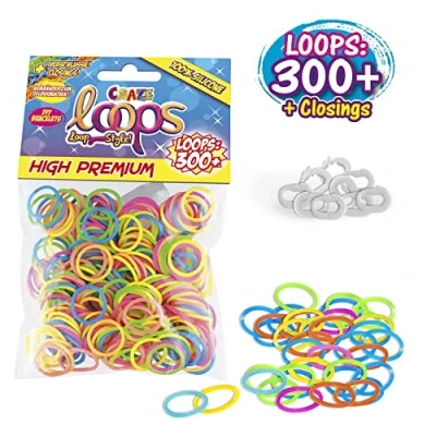 Craze loops - highest Craze premium quality - the ultimate trend from the USA - a children's jewellery must-have for girls and boys Super craft set for children - create your own jewellery - create colourful friendship bands and wonderful bracelets - there are no limits to creative knotting fun Being creative is in the blood - and this is already from the beginning. With our Craze Loops, we have not only created the foundation of our existence, but also powerfully cranked the hype around the colourful knotting rings. But everyone can simply be round and colourful - we thought that at Craze and have also created many great accessories and cool sets with our loops that include everything you need to get started Whether sweet charms, trendy letter beads, knotting boards or exclusive bracelet knotting instructions - we have them all and make the hearts of all knotting lovers beat faster. And so that the bands tied with a lot of love and dedication do not pull and the creative works of art are beautifully elastic, we have made our Craze Loops not from PVC, but from 100% silicone. The highlight: our loops can be used again and again even after repeated knotting, as they do not become brittle or brittle The original Craze Loops are available in many different colour variations with about 300 Craze Loops and sufficient premium fasteners per pack, so that the loops fun can start straight away. Each pack has simple and well-illustrated instructions on the back, Manufacturer: CRAZE
